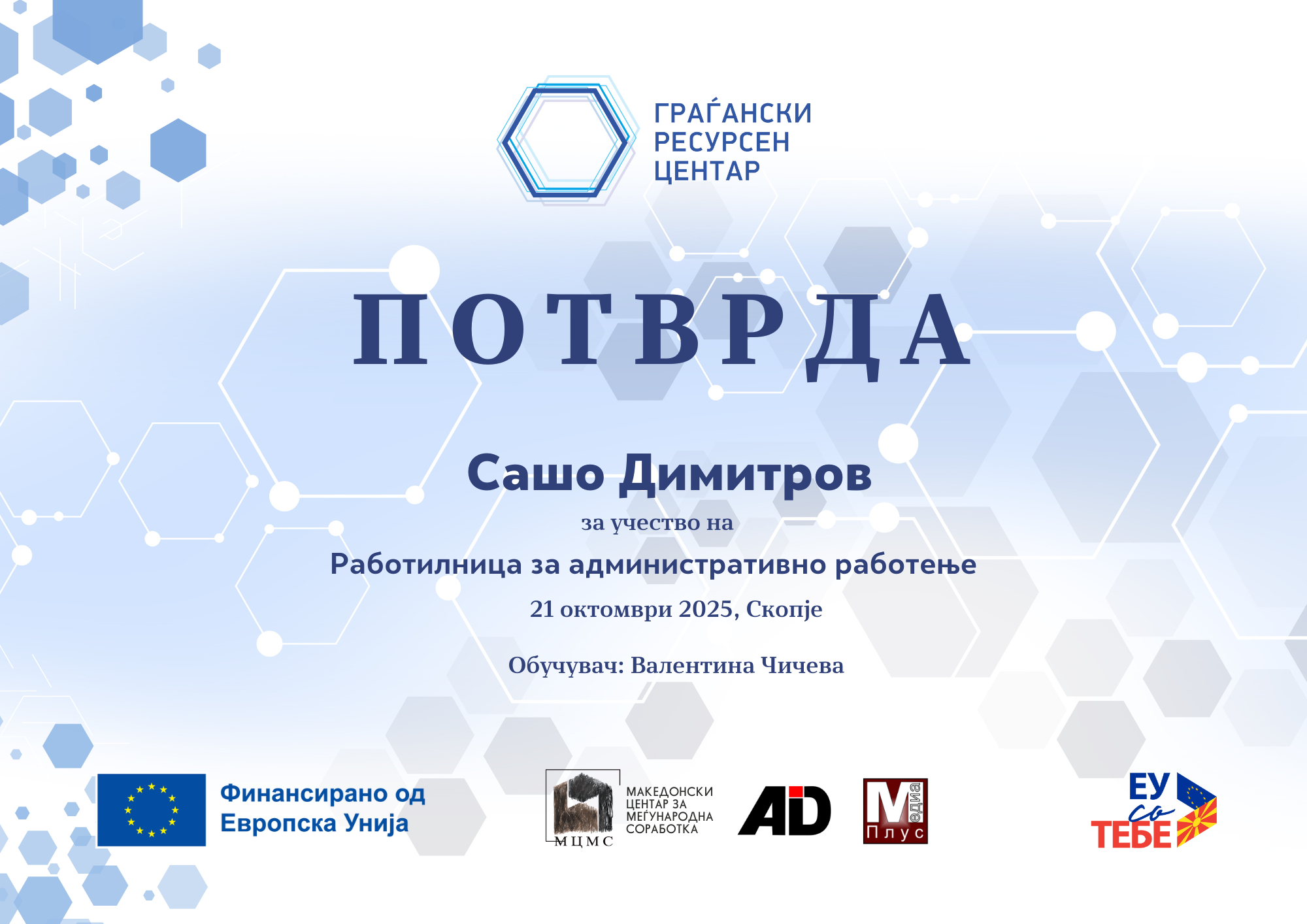 This activity is part of the ongoing efforts to improve administrative efficiency and compliance within public institutions, supported by the European Union.